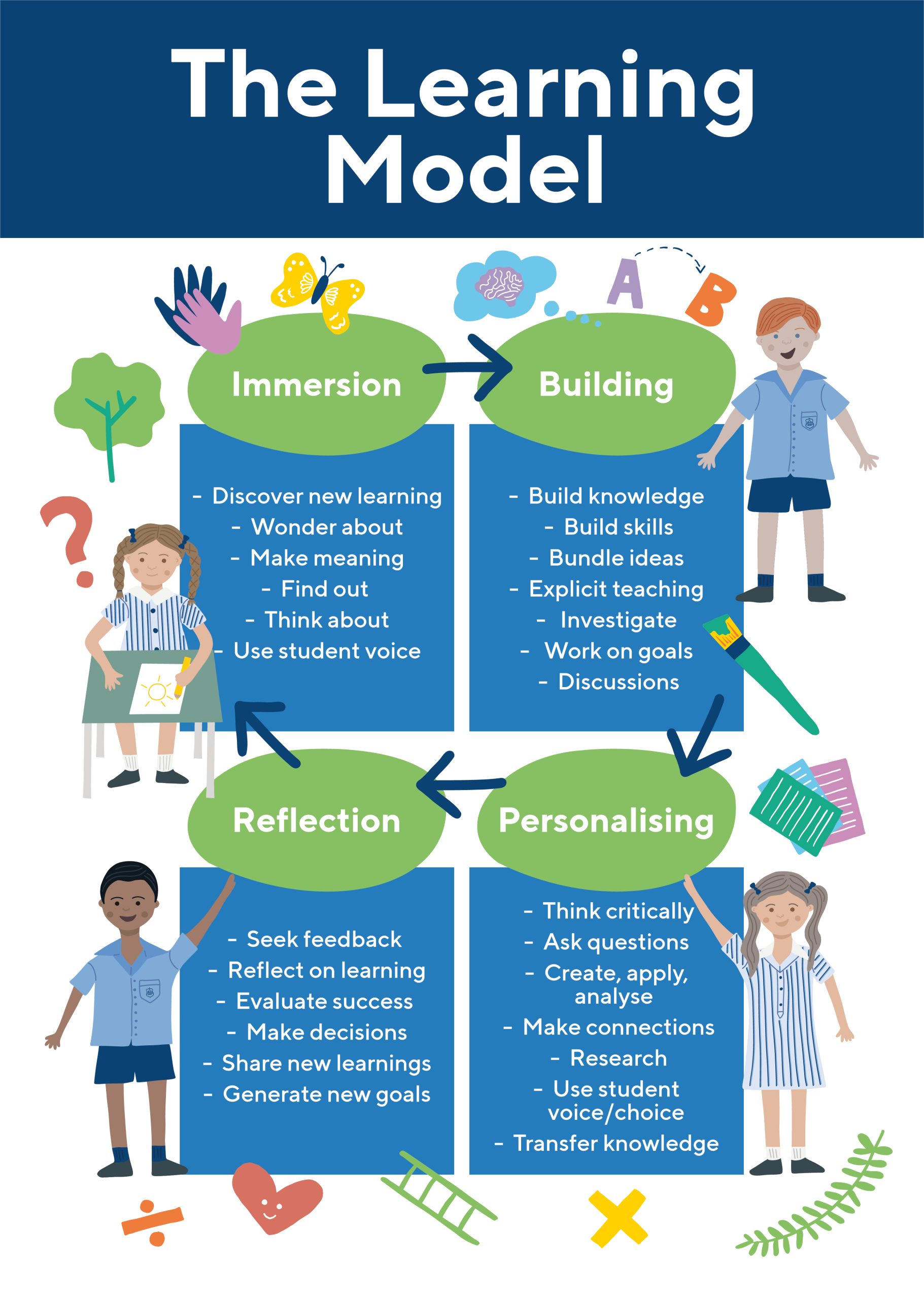 The Learning Process is where students engage in the learning on a daily basis across all curriculum areas and use the listed skills to discover new learning.